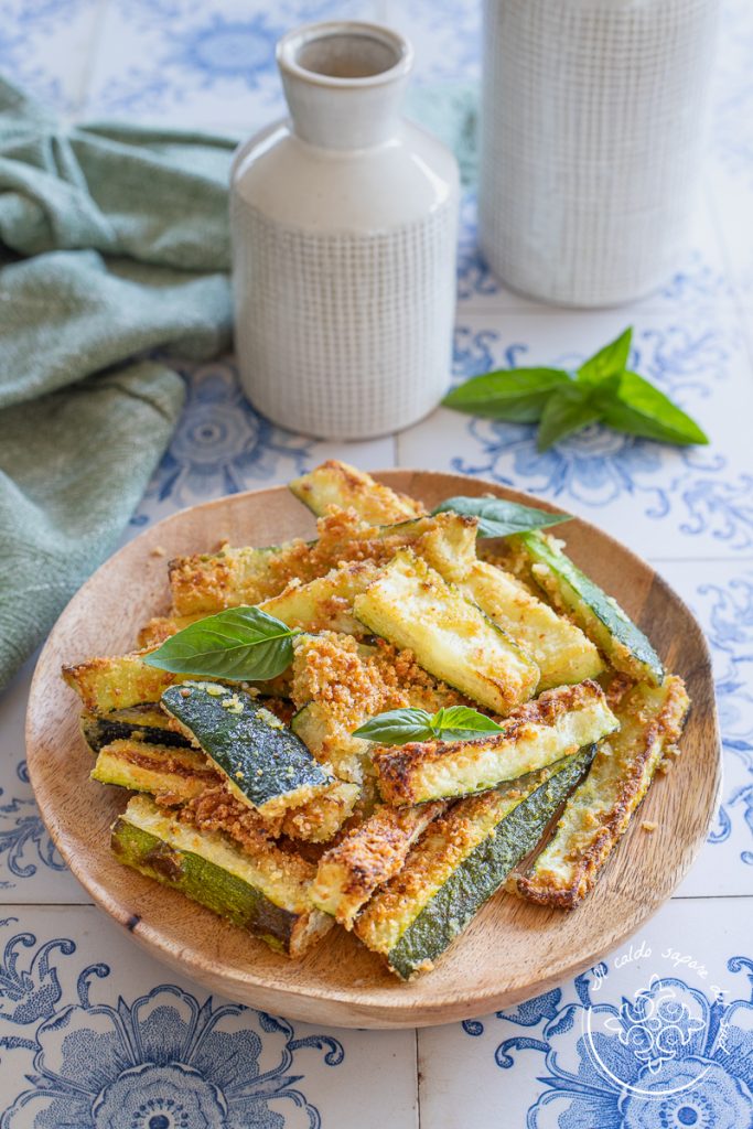 Abobrinhas fritas crocantes na airfryer. As abobrinhas na airfryer, crocantes e douradas são um acompanhamento gostoso e leve que você pode levar à mesa em qualquer ocasião. Ótimas como acompanhamento para um menu de carne ou peixe, podem ser saboreadas no prato ou usadas para rechear sanduíches, focaccias e piadinas. As abobrinhas fritas na airfryer têm uma empanada crocante e leve sem ovos, que garante uma casquinha dourada e um sabor único, quase como se as abobrinhas tivessem sido fritas, mas não foram. Como todas as receitas rápidas de verão presentes no meu blog, esta também é leve, simples e saborosa e para prepará-la bastam pouquíssimos ingredientes. Abobrinhas, sal, azeite, farinha de rosca, parmesão e sêmola remacinada de trigo duro vão ajudar você a levar à mesa um prato delicioso e econômico, exatamente como os da minha coleção de Receitas econômicas fáceis e rápidas. Mas agora é o momento de descobrir como fazer abobrinhas crocantes na airfryer, prontos? Vamos para a cozinha então, mas antes lembro que se quiser ficar atualizado sobre todas as minhas receitas, você pode seguir minha página no Facebook (aqui), meu perfil no Instagram (aqui) e se der uma olhada na minha coleção de Receitas com abobrinhas, encontrará muitas outras ideias interessantes.