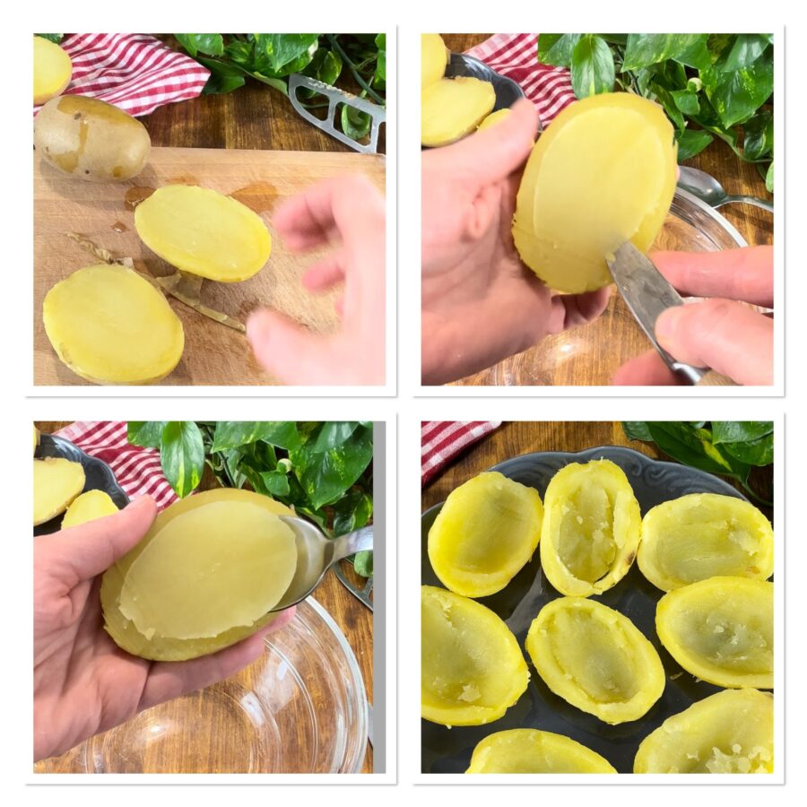 • Reserve o miolo das batatas e deixe esfriar completamente.
