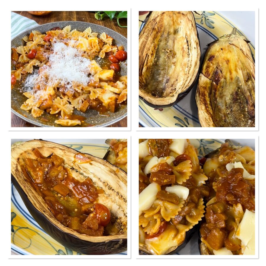 Se você já experimentou a minha receita das barquinhas de berinjela assadas recheadas com arroz, agora precisa provar a receita das berinjelas recheadas com massa à siciliana, um prato principal rico e delicioso, perfeito para o verão e que traz todo o sabor e o aroma da Sicília. Para fazer as berinjelas recheadas com massa você pode usar o tipo de berinjela que preferir; eu escolhi a preta, mas pode usar também a violeta ou a branca. Para o resto, com poucos ingredientes você leva à mesa um prato que surpreende, realmente excepcional!