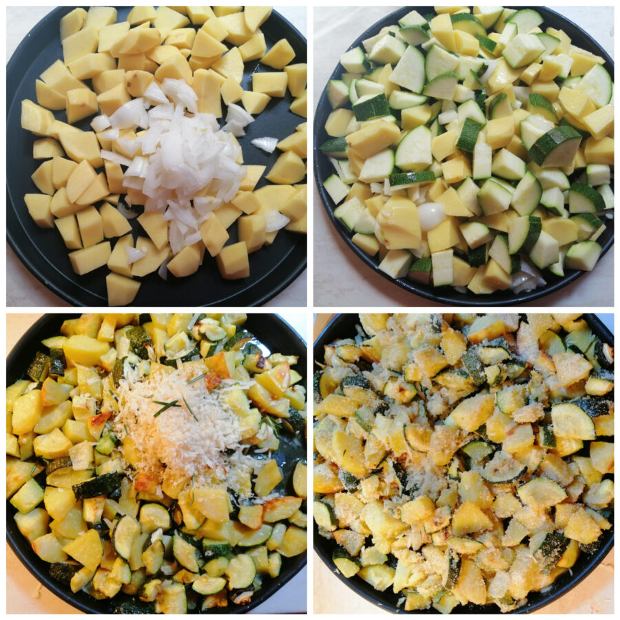 Se as batatas e abobrinhas no forno já são um prato bem gostoso, experimente acrescentar duas colheres de queijo ralado e duas de farinha de rosca e você vai ver que sabor depois de uma boa gratinada no forno — e, se quiser, usando a Farinha de rosca aromatizada à siciliana!!! Esta de hoje é uma receita com abobrinhas ou uma receita com batatas, saudável e saborosa, que pode ser um acompanhamento simples e gostoso, mas também um prato vegetariano e vegano, ideal para adultos e crianças. Prontos para preparar juntos? Vamos lá — e, como sempre, se quiser ficar por dentro de todas as minhas receitas, você pode seguir minha página do Facebook (aqui) e meu perfil no Instagram (aqui).