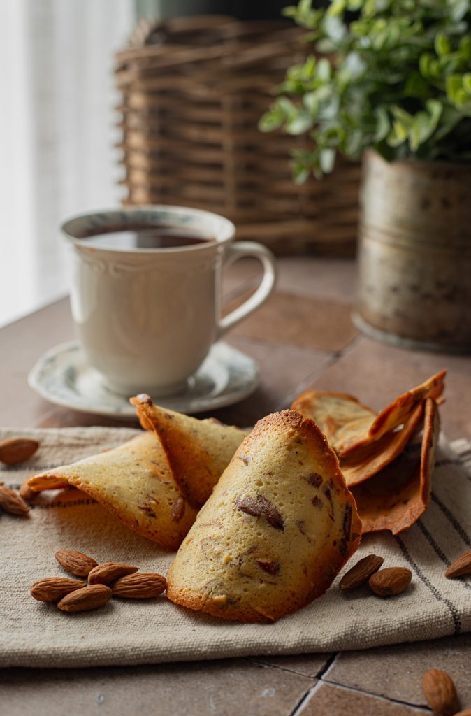 As folhas de chá de amêndoa de Zafferana como as de pistache, são biscoitos típicos da cozinha siciliana tradicional, nascidos na vila etnea por volta dos anos 50 do século XX, obra do confeiteiro Alfio Salemi, na confeitaria homônima. Eles marcam a culinária típica da região junto com as também famosas Siciliane fritte con tuma e acciughe e são biscoitos muito finos e delicados, feitos com uma massa fluida semelhante àquela usada para fazer as Cialde per gelato fatte in casa. Nesta receita das folhas de chá, as amêndoas picadas à faca ficam visíveis e conferem aroma e crocância. Dourados nas bordas e mais claros no centro, esses doces são biscoitos secos de despensa, perfeitos para acompanhar o chá, um vinho doce ou como sobremesa para servir ao final da refeição. Uma receita simples, com poucos ingredientes e gestos antigos, que conta a confeitaria tradicional de Zafferana Etnea e o calor das cozinhas de casa. Vocês vão ver que os biscoitos de chá de Zafferana feitos em casa são fáceis de fazer e tão bons quanto os originais. Fáceis de quebrar e delicados, uma vez provados vocês não vão conseguir parar de fazê-los! Sigam-me na cozinha, vamos preparar juntos os biscoitos finos de amêndoa de Zafferana, mas antes lembro que se quiserem ficar atualizados sobre todas as minhas receitas, podem seguir minha página do Facebook (aqui) e meu perfil no Instagram (aqui).