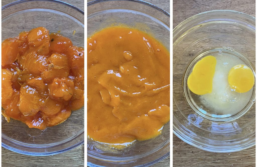 Adicione a manteiga em temperatura ambiente e trabalhe para incorporá-la, então misture a massa com a polpa de caqui batida.