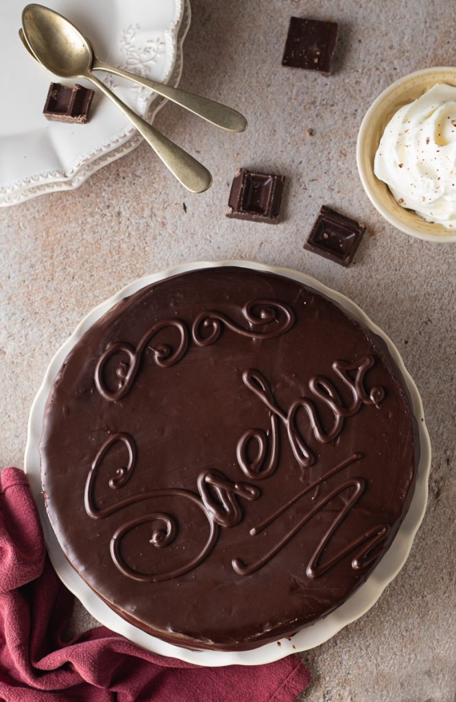 A verdadeira receita da sachertorte é um segredo guardado pela confeitaria vienense Sacher, mas com o tempo muitos tentaram criar versões inspiradas nessa delícia e, como eu já provei pessoalmente, posso dizer que a minha receita é até um pouco melhor que a original. Hoje compartilho com vocês: essa versão, delicada, fofinha e cremosa, nada enjoativa e bem gostosa, vai conquistar vocês; e se quiserem servir com um pouco de sorvete de creme como em Viena, vão amar ainda mais!!