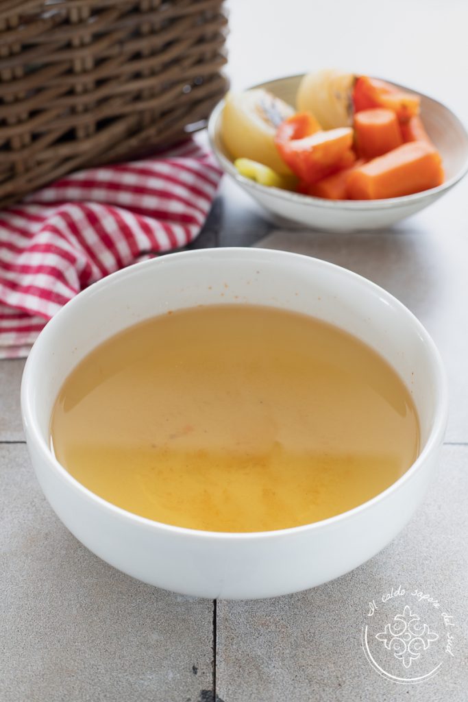 Caldo de legumes, a receita da vovó para um caldo de legumes caseiro perfumado e saboroso. O caldo de legumes, assim como o caldo de carne e o de peixe, é uma preparação básica da cozinha italiana. Extremamente simples e versátil, um bom caldo de legumes caseiro é o ingrediente ideal para risotos, cremes e não só. Mas o que é preciso para fazer um bom caldo de legumes como o da vovó? Na verdade é preciso muito pouco, mas o que realmente importa é a escolha dos legumes, que devem ser frescos e da estação. Além de aipo, cenouras e cebolas, todas as adições e variações que desejar são permitidas, inclusive a escolha das especiarias mais aromáticas que possam ajudar a tornar nosso caldo único e especial. Com os legumes que sobraram do caldo, o que fazer? Os legumes que sobraram podem ser cortados finamente, adicionados novamente ao caldo e usados para cozinhar um bom prato de massinha no caldo, servido com uma generosa pitada de queijo ralado na hora… Prontos para descobrir como fazer um caldo de legumes perfeito para suas receitas? Vamos para a cozinha, mas antes de arregaçarmos as mangas, lembro que se quiser ficar atualizado com as novas receitas pode seguir minha página no Facebook (aqui) e meu perfil no Instagram (aqui).
