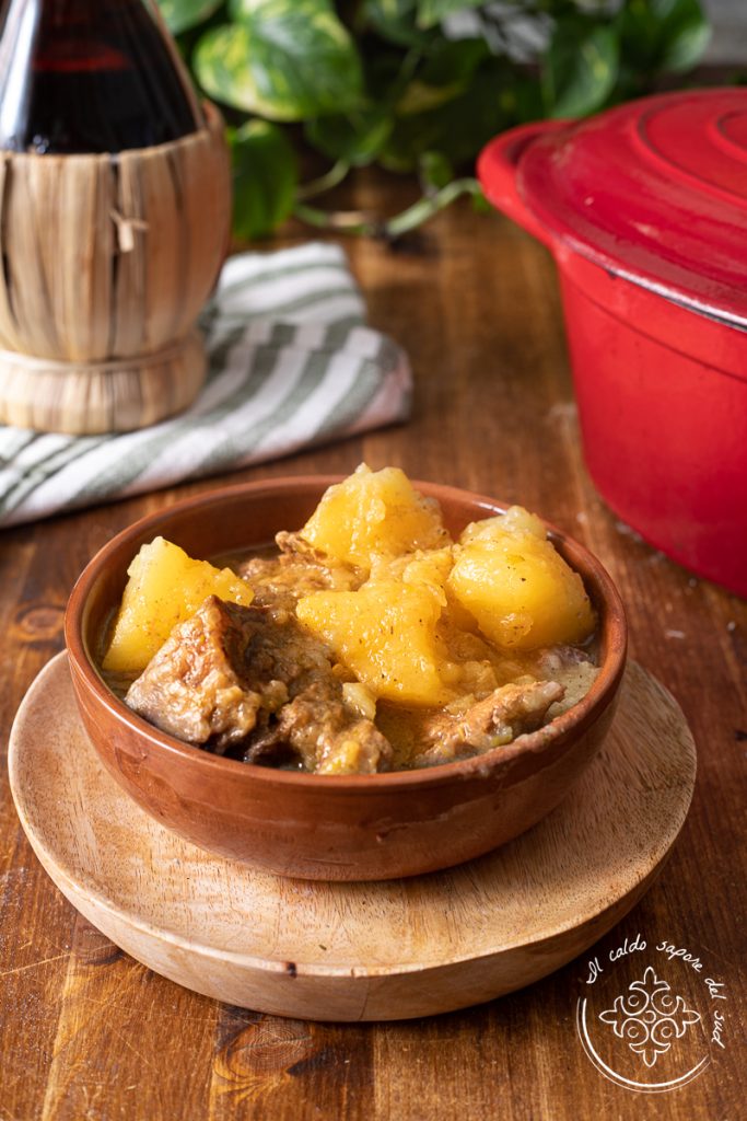 Carne a grassato alla catanese, a receita do spezzatino com batatas à siciliana e uma receita da Cucina siciliana e dell ricette della nonna muito querida, como o Falsomagro al sugo ou o Sugo di carnevale alla catanese. A Carne aggrassato siciliana é uma receita da vovó com um nome tão estranho quanto boa. O spezzatino aggrassato com batatas é um prato da tradição culinária siciliana e, como acontece com muitas receitas tradicionais, existem inúmeras variantes: não só cada província, mas também cada vila, bairro ou família tem sua versão exclusiva que considera a melhor. Há quem, por exemplo, goste de preparar a carne a grassato com batatas e ervilhas e quem prefira a carne aggrassato com batatas e molho, acrescentando então concentrado de tomate ou polpa. Quando eu era pequena, a carne a grassato ao natural com batatas era o prato que a vovó Cettina, mãe da minha mãe, preparava aos domingos. Mas o que significa “carne a grassato”? Vou dizer desde já: grassato não significa gordo, mas glaceado. E essa glaceatura vem do molhinho que se forma com o esfarrilhamento das batatas no caldo da carne, uma espécie de creminho delicado que envolve cada pedaço de carne, tornando-o macio, aveludado e reconfortante, e que permite também temperar a massa, que se torna pasta aggrassato. Por isso a carne a grassato ao natural com batatas é um verdadeiro comfort food, um spezzatino com batatas que tem origem em tempos em que a carne era pouca e consumida uma vez por semana: era cozida com batatas para aumentar a quantidade de porções na mesa. E justamente por isso se criou o ditado “i patati su megghiu da carni” (as batatas são mais gostosas que a carne). Vamos para a cozinha prepará-la juntos, tenho certeza de que vocês vão gostar; antes, lembro que se quiserem ficar atualizados sobre as minhas receitas podem seguir minha página Facebook e meu perfil Instagram.