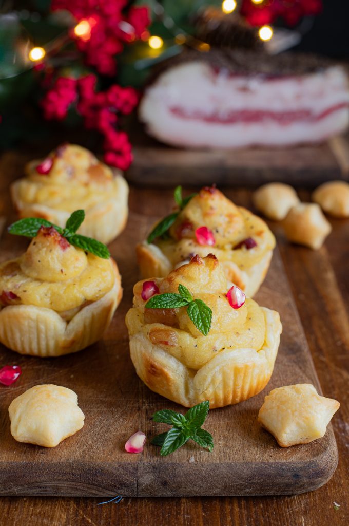 Cestinhas de massa folhada com guanciale e batatas, uma receita saborosa para um aperitivo original e gostoso, ideal para festas e para todos os buffets. As cestinhas de massa folhada recheadas com creme de batatas e guanciale são um aperitivo rústico, saboroso e irresistível, perfeito para festas, para um buffet em pé; também são um finger food apetitoso e podem ser levadas à mesa em qualquer ocasião. Preparar essa delícia é realmente simples, então se você procura uma receita com guanciale diferente do habitual — que não seja o clássico e delicioso espaguete à carbonara — eu recomendo que experimente, tenho certeza de que você vai amar desde a primeira mordida!! Vamos para a cozinha e preparar juntos esse aperitivo incrível com guanciale, mas antes de correr para o fogão, lembro que se quiser ficar atualizado sobre novas receitas você pode seguir minha página no Facebook (aqui) e meu perfil no Instagram (aqui).