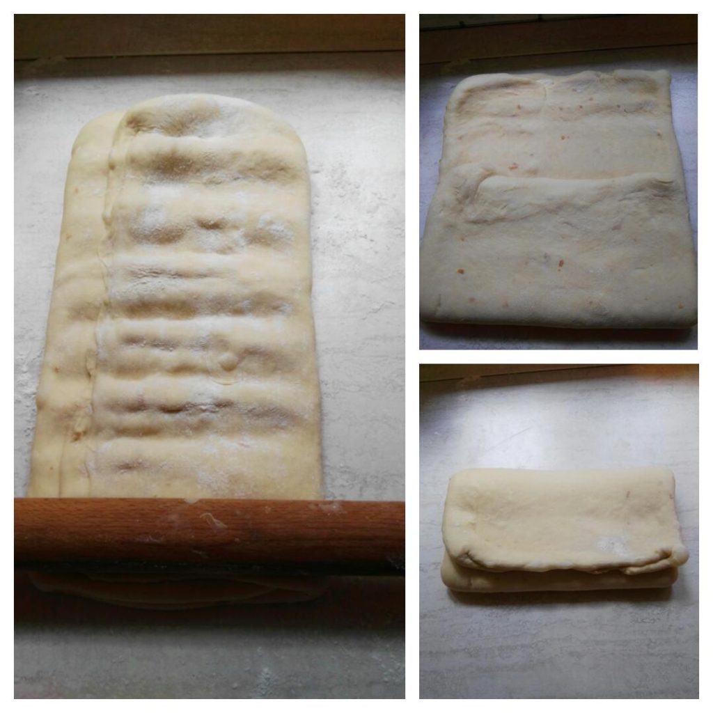 Depois disso, estenda a massa e repita a última série de dobras. Atenção ao abrir a massa para não rasgar as camadas que se formaram.