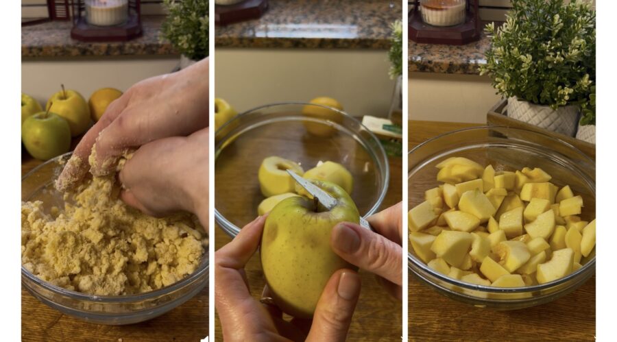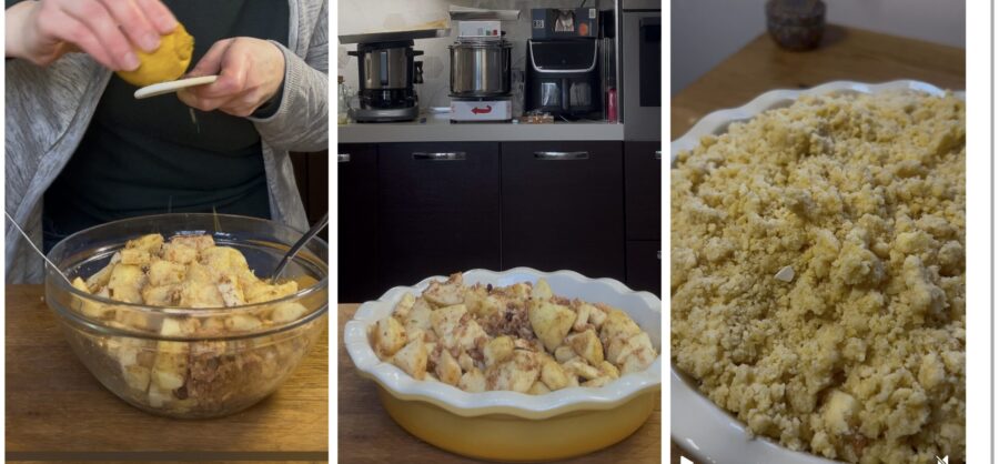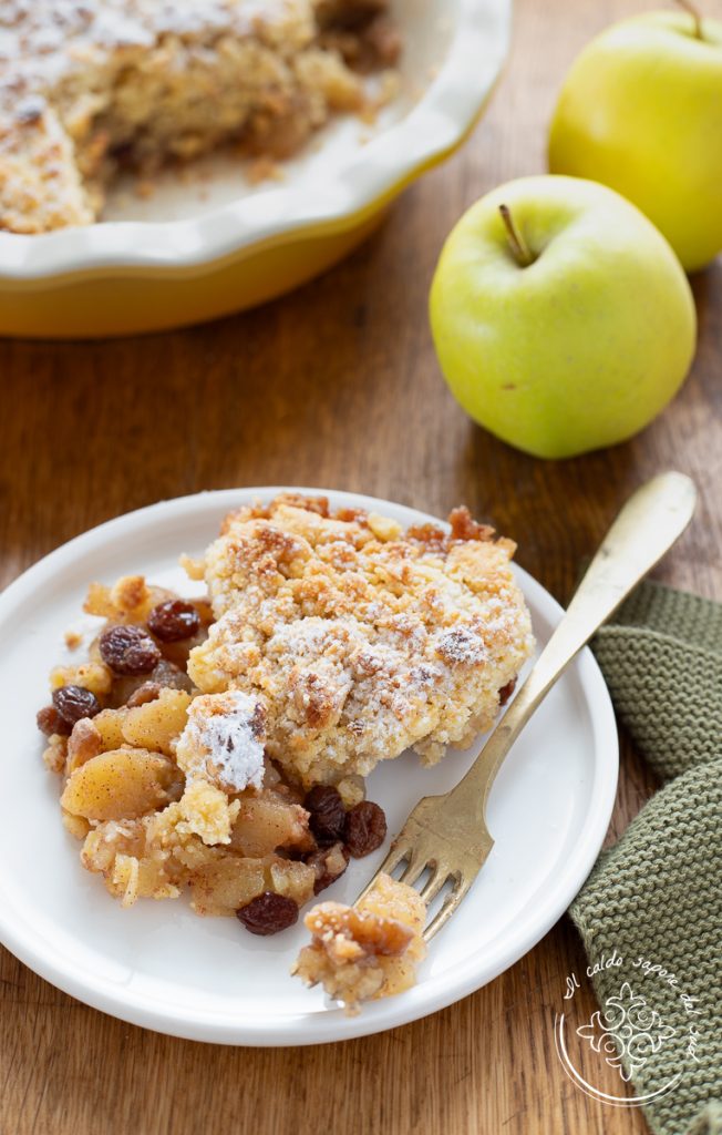 Crumble de maçã, receita da vovó com maçãs, nozes, canela e passas, uma sobremesa parecida com a sbriciolata de maçã, mas mais fácil e rápida e que faz parte da nossa grande coletânea de Sobremesas com maçã e que eu garanto que vai desaparecer da mesa num instante. Imagine uma base crocante de massa quebradiça seca e granulosa, que envolve um recheio macio e suculento de maçãs e canela, este é o crumble de maçã receita base, mas nós queremos deixá-lo ainda mais rico e vamos acrescentar nozes, passas e amaretti. Uma espécie de torta de maçã coberta, mas sem a base, uma sobremesa com perfume irresistível e dupla textura, perfeita no café da manhã, no lanche e eu diria até como sobremesa após a refeição, talvez acompanhada por um bom sorvete de creme, como se fosse uma Apple pie americana. Ao longo desses anos preparamos muitas Tortas de maçã, mas também bolinhos de maçã, biscoitos de maçã e muito, muito mais. Já fiz também um delicioso crumble de maçã básico que vocês amaram muito, mas este crumble com maçãs, nozes, amaretti e passas é realmente extremamente perfumado e rico. Prontos pra correr pra cozinha e fazer junto? Então vamos, mas antes de arregaçar as mangas lembro que, se quiser ficar por dentro de todas as minhas receitas, pode seguir minha página do Facebook (aqui) e meu perfil no Instagram (aqui).
