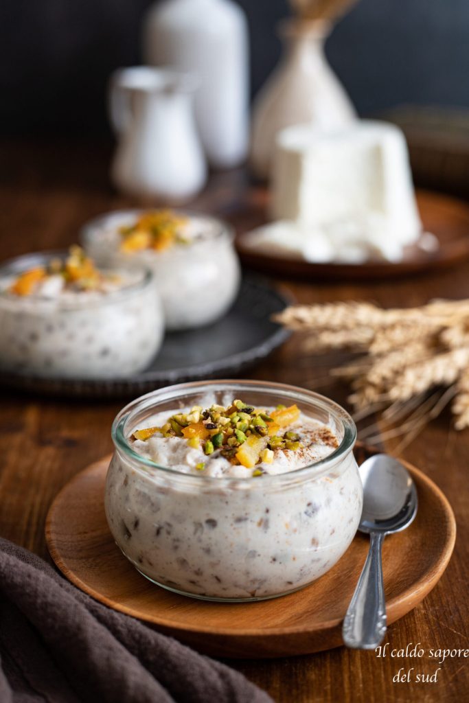 Cuccia de Santa Lúcia, receita siciliana original com ricota e trigo cozido. A cozinha siciliana com as suas receitas da vovó é rica em doces tradicionais e, sobretudo, em doces com ricota, muitas vezes ligados às festas mais importantes do ano, como no caso da cassata ou do cannolo, e outras vezes ligados apenas à tradição gastronômica, como os Cartocci siciliani ou os Iris.