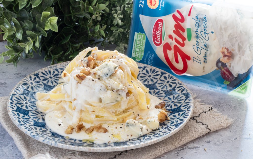 Fettuccine com creme de gorgonzola D.O.P e nozes. Já disse que adoro gorgonzola, mas não contei que não sou a única! Na nossa casa o Gorgonzola D.O.P nunca falta, meu pai era apaixonado por ele e minha mãe sempre o comprava; aqui em casa é a mesma coisa: eu e os meus filhos adoramos, então eu o compro o tempo todo para usar em tudo, desde a pizza, em pratos como os Nhoques de batata roxa com creme de gorgonzola ou em segundos como as Tortinhas de abóbora e batata ao gorgonzola, e até para saboreá-lo no jantar com uma boa fatia de pão caseiro. Alguns dias atrás, minha irmã veio me visitar, não nos víamos há um tempo e pedi que ficasse para o almoço; na geladeira não tinha muito além do meu gorgonzola preferido, fettuccine frescas e pouco mais, mas na despensa tinha nozes e creme de leite: parecia pouco, mas eu tinha todos os ingredientes para um prato principal bem gostoso!! Gente, minha irmã ficou para o almoço e, na companhia dos meus filhos, curtimos um almoço rico e saboroso, preparando fettuccine com creme de gorgonzola D.O.P bem cremosos e deliciosos! Querem provar também? Vamos para a cozinha, eu conto a receita, mas antes lembro que se quiserem ficar por dentro de todas as minhas receitas podem seguir minha página do Facebook (aqui) e meu perfil no Instagram (aqui).