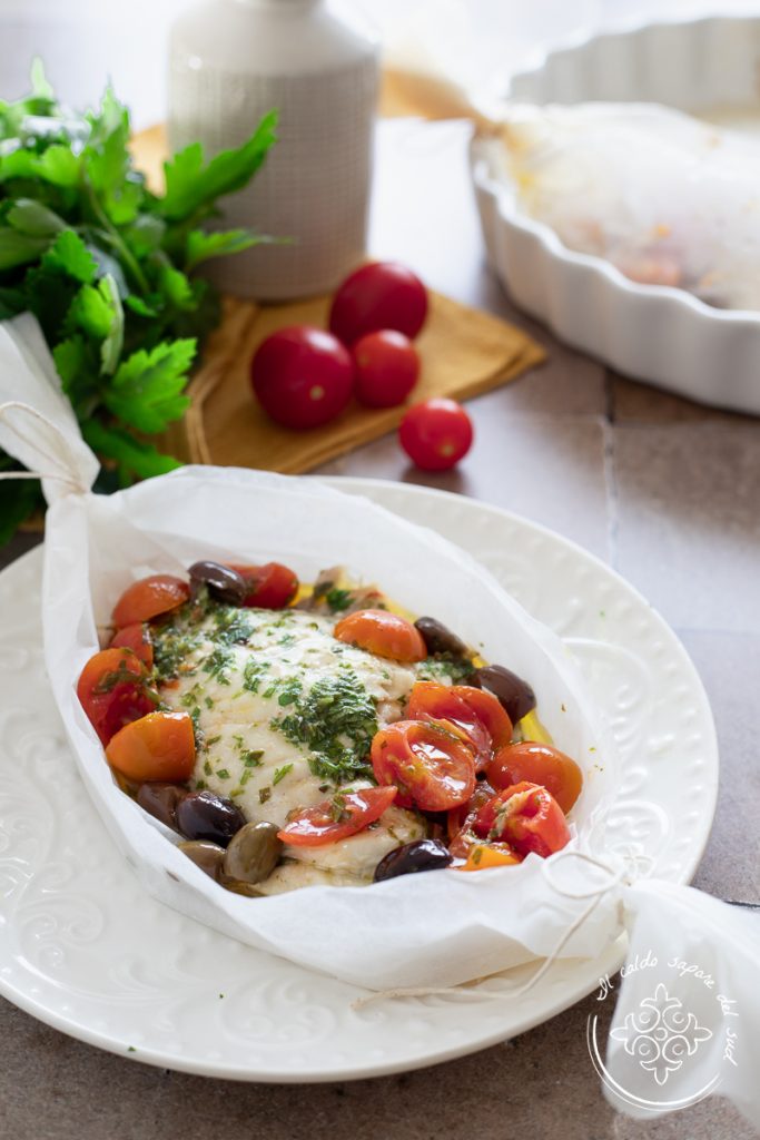 Filé de dourada assado no papelote: um segundo prato de peixe fácil e rápido que você pode servir em barquinhas individuais de papel manteiga. Seja pescado no mar ou de criação, a dourada pode ser preparada de muitos jeitos, como a Dourada ao limão na frigideira ou a Dourada assada com laranja, sem falar na Dourada assada com batatas e vinho branco e muito mais. Mas se você tem filés de dourada, como cozinhá-los? Hoje eu vou explicar como preparar filés de dourada no papelote com uma receita fácil e rápida, adequada para qualquer pessoa e que você pode usar para todos os tipos de filés de peixe que tiver disponível, mesmo filés de dourada congelados, filés de bacalhau congelados ou frescos e até com peixes azuis, como cavala, espadarte e muito mais. Para fazer essa receita você vai precisar de tomatinhos, azeitonas, um toque de alho, sal, azeite e um pouco de vinho branco; a receita se monta em dez minutos e assa em dez minutos, assim em um instante seu peixe fica pronto para ir à mesa e permanece super macio e saboroso. Prontos então para descobrir como preparar filés de dourada no papelote, perfeitos para enriquecer as nossas ideias para um menu à base de peixe? Vamos direto para a cozinha, mas antes eu lembro que
