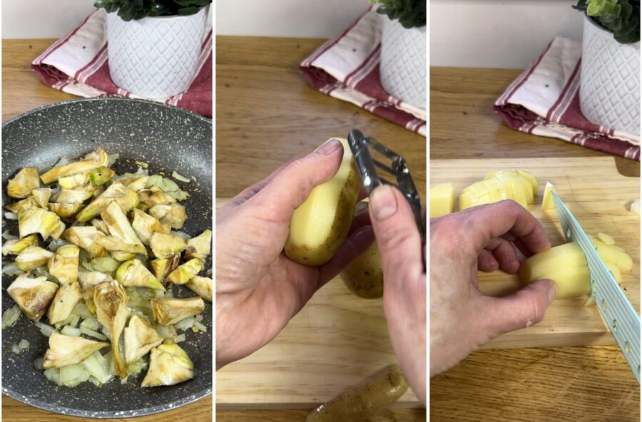 Passos para fazer a Frittata de alcachofras e batatas