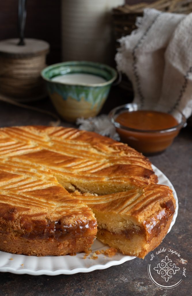 Gateau breton com caramelo de manteiga salgada ou “Gâteau de Lorient” ou ainda tarte bretonne. O gateau breton é um bolo típico da culinária francesa, ao qual tenho muito carinho por causa das inúmeras lembranças que tenho dessa terra maravilhosa e, para provar isso, já falei da galette de roi, dos chausson aux pommes, das galette bretonne e dos palets bretons. Minha última viagem à Bretanha me fez redescobrir o caramelo de manteiga salgada e todas as receitas fantásticas que têm esse ingrediente delicioso como base; por isso, junto com os biscoitos ao caramelo salgado, decidi trazer aqui o famosíssimo gateau breton ou tarte bretonne. A característica massa frolla, macia e ao mesmo tempo esfarelenta, a torna ideal para um café da manhã de outono, e o toque salgado do caramelo remete aos sabores tradicionais da França e da Bretanha.