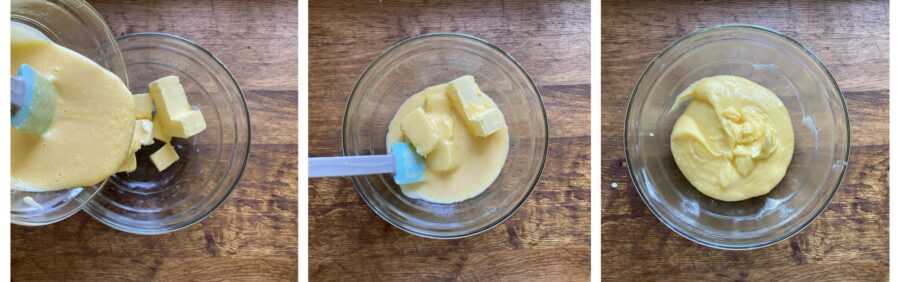 Adicione a mistura às manteiga e trabalhe até que a manteiga esteja completamente incorporada.