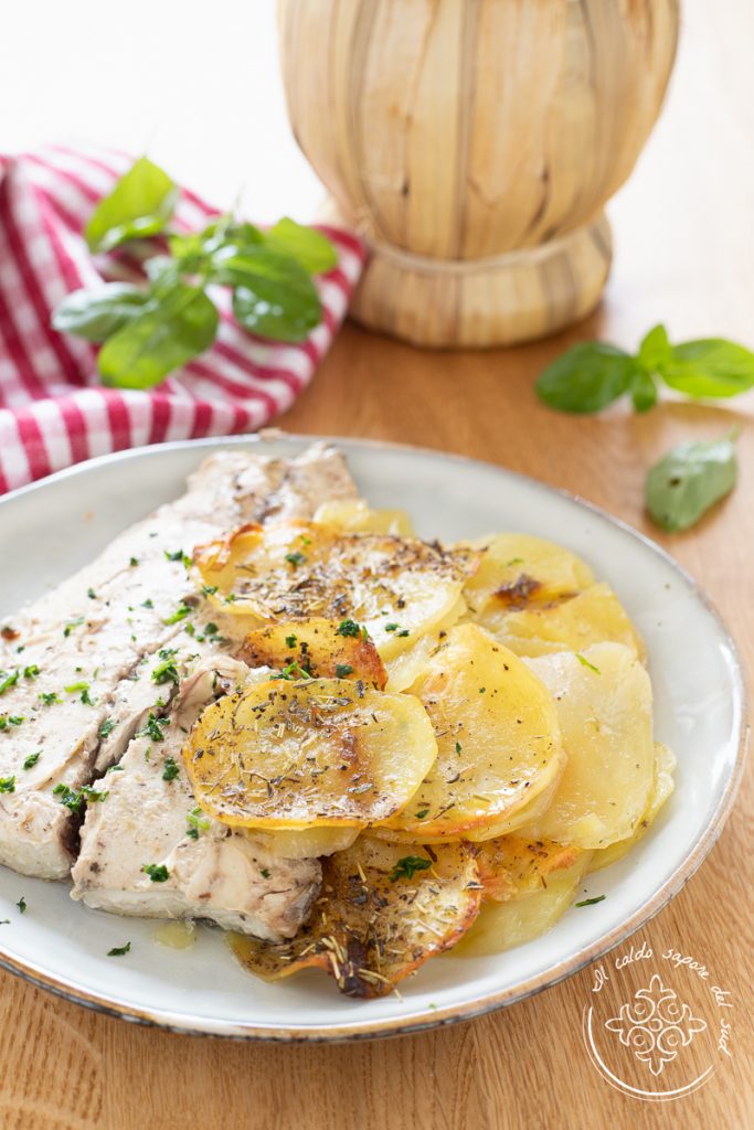 A lampuga, conhecida também pelo nome de capone, faz parte da grande família dos peixes azuis, tem carne magra e de fácil digestão e é rica em proteínas de alto valor biológico. Pode ser cozida de mil maneiras e uma das mais conhecidas é a lampuga agridoce com cebolas. Consumida principalmente no outono, período em que este peixe atinge tamanhos razoáveis que podem chegar a dois quilos ou mais, este peixe de baixo teor calórico é ótimo para dietas mais controladas. Nesta receita econômica, simples e saborosa ao mesmo tempo, preparei a lampuga assada com batatas finas e ervas, conseguindo também uma gratinação aromatizada que realçou o sabor desse peixe, já excelente por si só. Prontos para descobrir comigo a receita do capone assado com batatas? Vamos para a cozinha, mas antes de começarmos lembro que, se quiser ficar por dentro das novas receitas, pode seguir minha página Facebook e meu perfil Instagram.