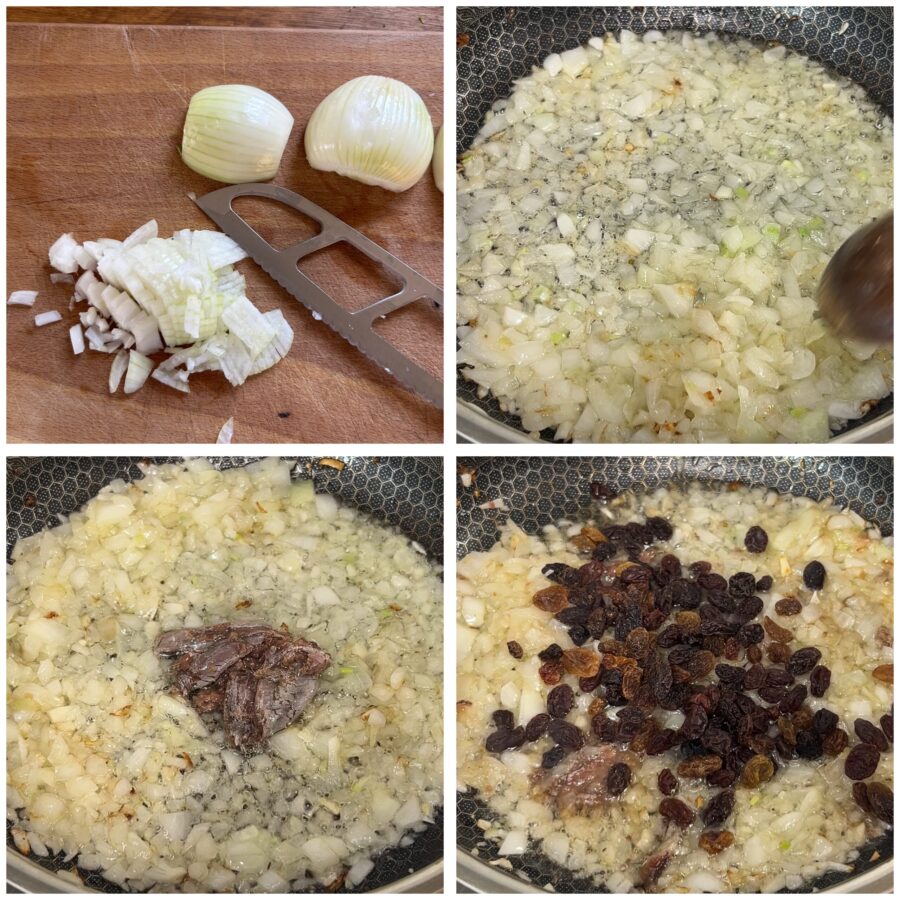 • Refogue a cebola na frigideira com bastante azeite, junte as anchovas e deixe-as se desfazerem.