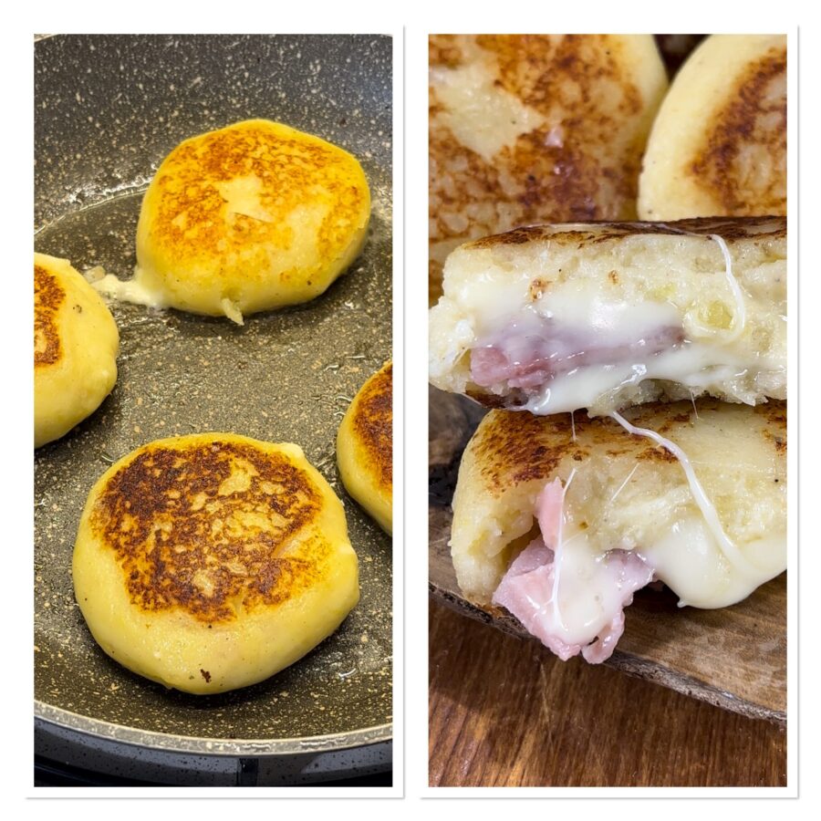Medalhões de batata na frigideira com presunto e queijo ou panquecas de batata recheadas, ou fofinhas de batata recheadas, chame como quiser, o resultado não muda: são deliciosos!