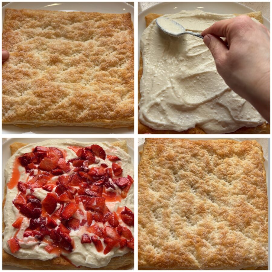 Passos para fazer o mil-folhas de ricota e morangos
