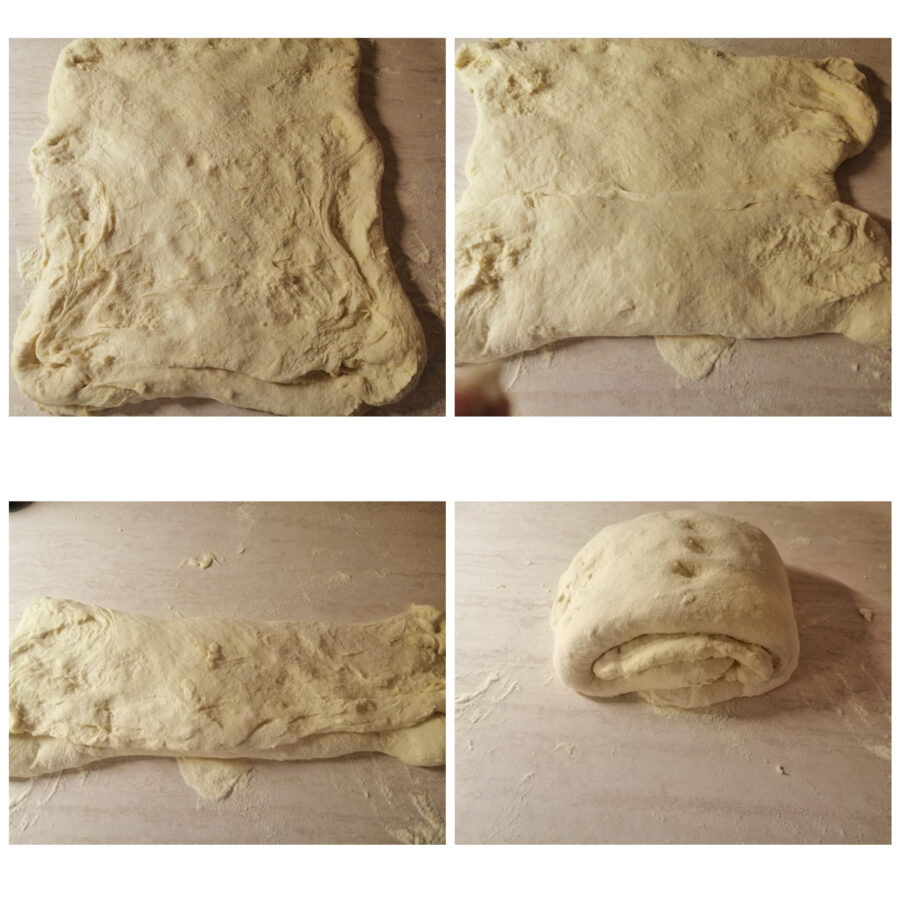 • Passados dez minutos, estenda a massa e repita as dobras como antes.