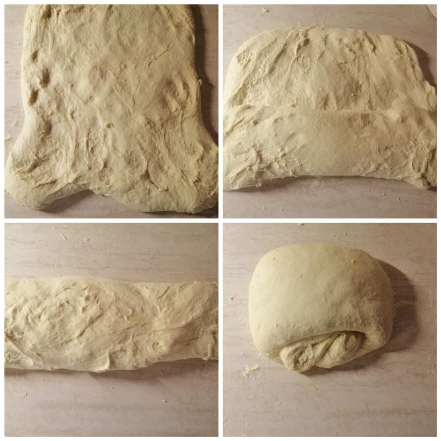 Gire o cilindro em 90° e enrole novamente formando uma bela bola de pão.