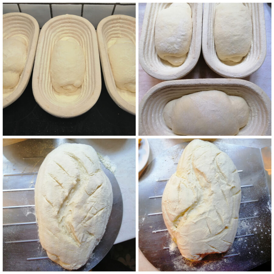 • Coloque os pães em cestos de fermentação bem enfarinhados ou em tigelas forradas com panos muito enfarinhados.