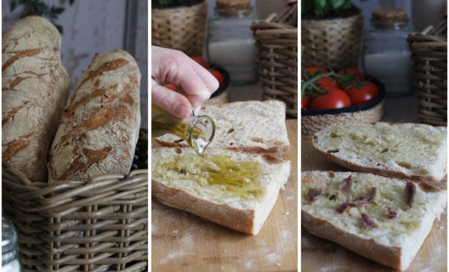 Você pode rechear o pão cunzato também com legumes grelhados, berinjela frita, ou simplesmente sal, azeite e pimenta.