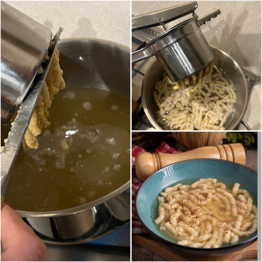 Os passatelli cozinham em cerca de 90 segundos: estão prontos quando sobem à superfície e ficam macios.