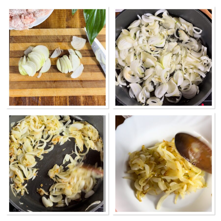 Pele as cebolas, lave-as e fatie-as; você pode optar por fatias mais grossas e firmes ou usar a mandolina — eu prefiro a primeira opção para que não se desfaçam demais durante o cozimento. Coloque-as em uma frigideira, regue com um bom fio de azeite, ajuste o sal e deixe-as murchar em fogo médio, mexendo frequentemente. Depois transfira para um prato e reserve.
