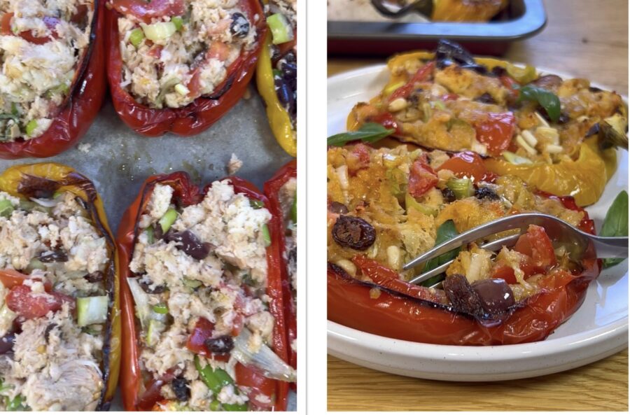 Ingredientes para fazer os Pimentões recheados com atum à mediterrânea