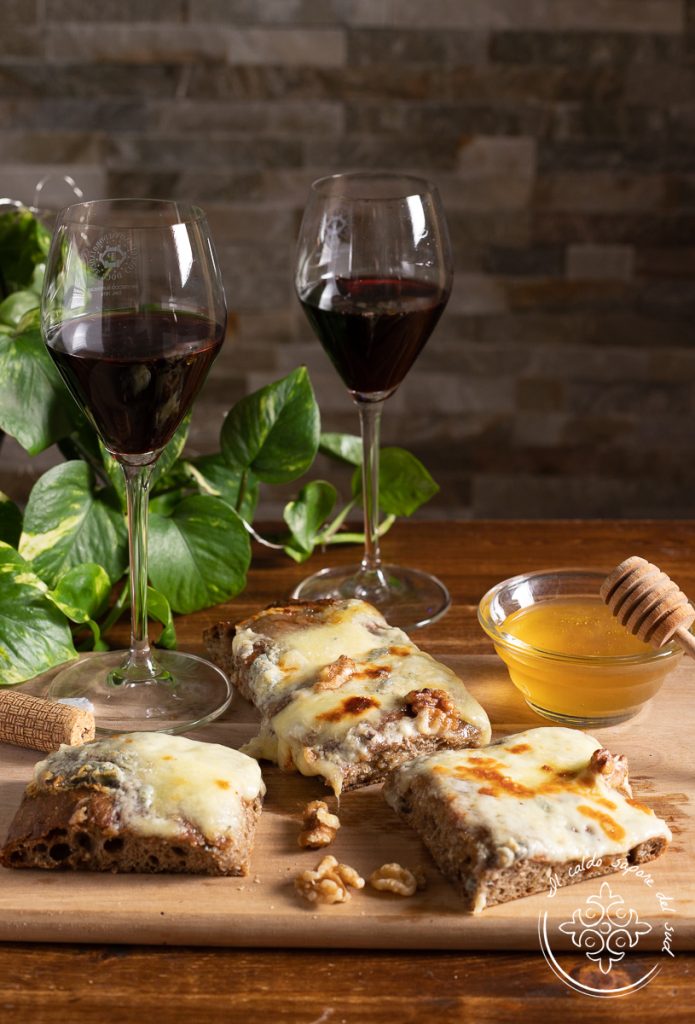 Pizza aos quatro queijos com mel e nozes com farinha de quatro cereais. Às vezes basta muito pouco para ser feliz e uma pizza caseira acompanhada de uma garrafa de vinho pode ser a ideia certa para passar uma noite com amigos ou familiares diferente do habitual. Alguns dias atrás, em uma tarde meio chata, uma ligação inesperada avisou que amigos queridos que não víamos há tempos viriam nos visitar: imaginem a alegria e a surpresa!! O que fazer para o jantar? Eu já sabia que meus amigos adoram a pizza com farinha de quatro cereais, mas queria uma versão original e saborosa e não a clássica margherita. Então, enquanto eu começava a sovar a massa, mandei meu marido comprar os ingredientes para a pizza quatro queijos com mel e nozes. Quando os amigos chegaram, a pizza foi servida e estava realmente deliciosa, mas a noite e o nosso sucesso não teriam sido os mesmos se meu marido não tivesse pensado em acompanhar tudo com uma taça de vinho muito boa, servida na temperatura certa!