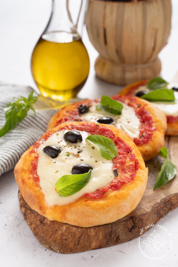 Para obter pizzinhas fofas é importante que a massa esteja bem fermentada; então, depois de dobrar, abra as pizzas pressionando as bolinhas do centro para as bordas, deixando as beiradas um pouco mais grossas.