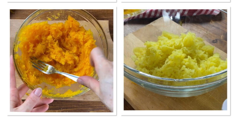 Amasse a abóbora com um garfo.