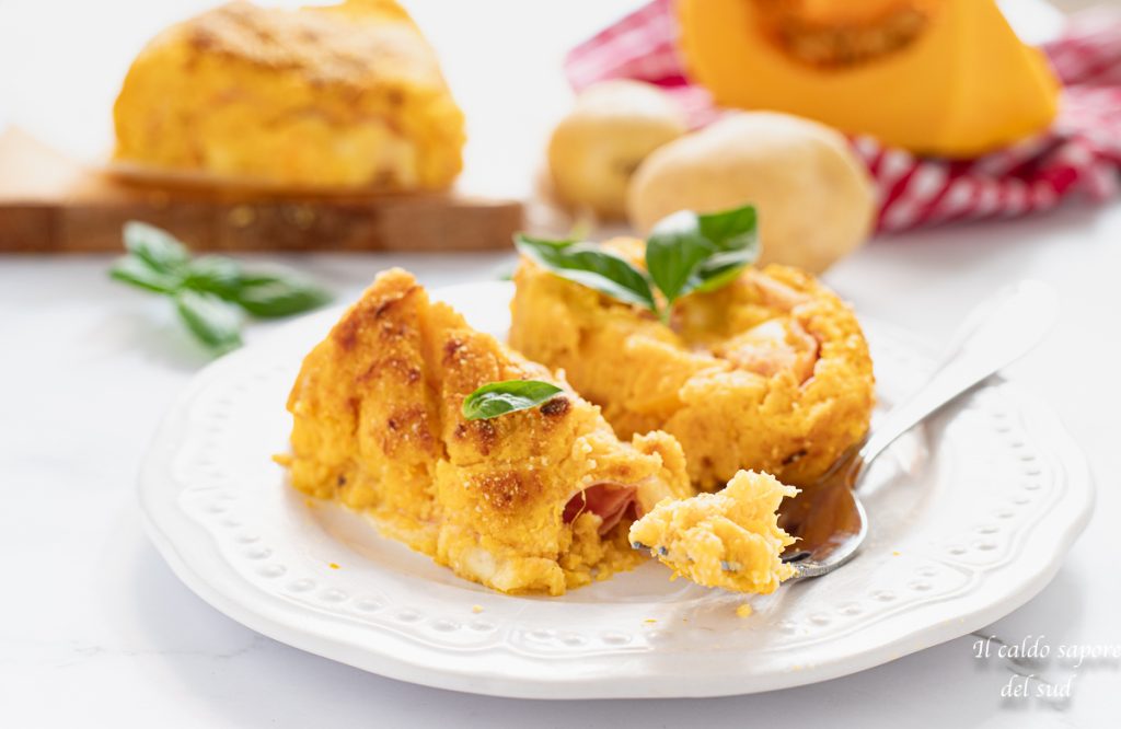 Polpettone de abóbora e batata assado com scamorza defumada e presunto, uma receita com abóbora fácil, rápida e saborosa e uma receita de outono que você precisa experimentar!