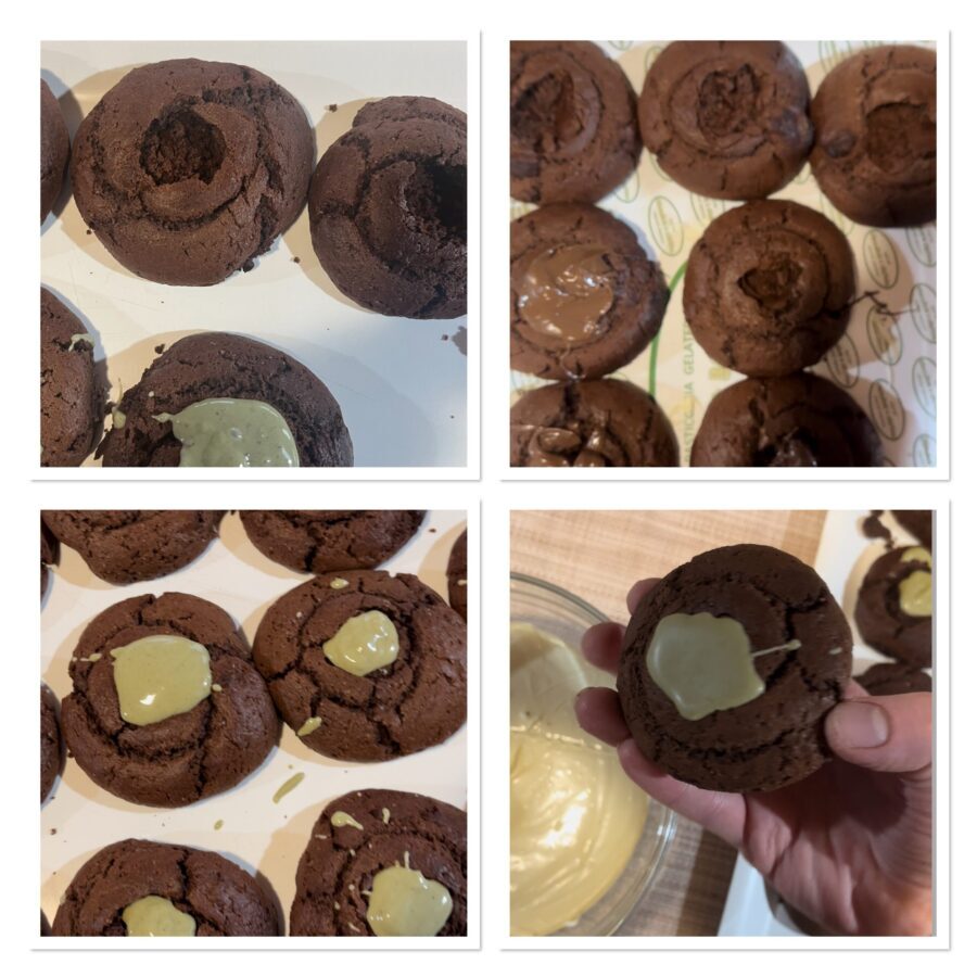 Asse por cerca de 7 minutos a 180°C, faça o teste do palito; se estiverem prontos, retire do forno imediatamente, tire da assadeira e deixe esfriar. Atenção: sendo pequenos, podem secar rápido.