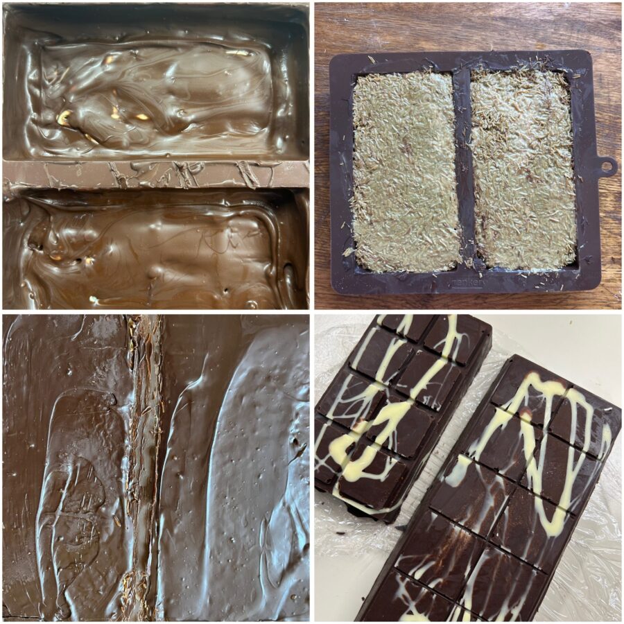 Retire a forma da geladeira ou do congelador e recheie o interior com a mistura de kataifi e pistache. Nivele muito bem a superfície com uma espátula e compacte, então coloque no congelador por 20-30 minutos. Aqueça novamente o chocolate meio amargo até atingir 31-32°C, despeje-o sobre o recheio e nivele com a espátula para fechar completamente a barra. Leve a forma ao congelador por 30-40 minutos, até o chocolate ficar totalmente solidificado; então desenforme e aproveite. O Dubai Chocolate está pronto para ser saboreado!
