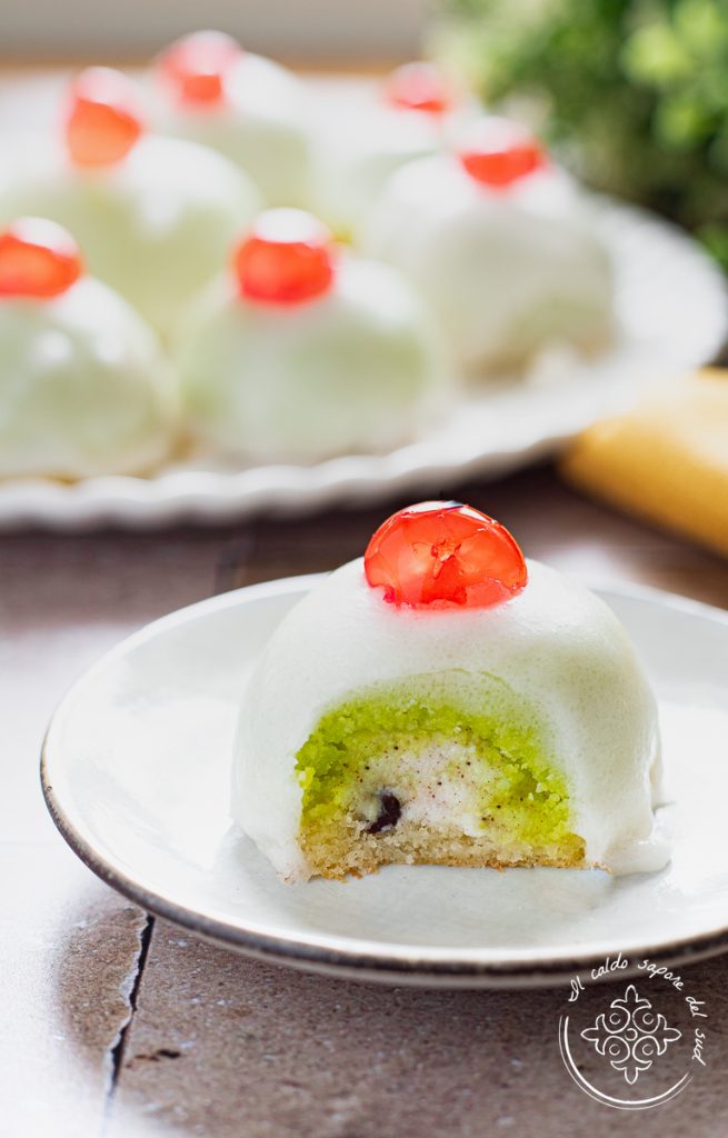 São brancas, redondas e de forma inconfundível, de sabor marcante, as “minne ou minnuzza de Sant’Agata” são um doce típico siciliano e são preparadas sobretudo na festa dedicada à padroeira da cidade de Catânia, junto com outro doce característico, as Olivette de Sant’Agata. Fazem parte da Cozinha siciliana e receitas da vovó que todo bom siciliano conhece e aprecia, e são as Cassatas sicilianas em versão miniatura. Todo catanês que se preze sabe que a história das “minnuzze de Santa Ágata” remete à vida da Santa de Catânia e ao seu martírio: nascida em família nobre cristã, a jovem Agata, com quinze anos, decidiu consagrar-se a Deus e tornou-se uma das virgens consagradas pelo bispo. Rejeitando as investidas do procônsul Quintiliano, que tentou forçá-la a renegar a fé, Agata recusou e, por vingança, sofreu humilhações e torturas até o corte dos seios, das quais foi milagrosamente curada durante uma visão mística. As torturas continuaram e culminaram na noite do dia 5 de fevereiro de 251, quando Agata morreu na sua cela. A forma particular desses doces brancos, com uma cereja cristalizada vermelha no topo, não é outra coisa senão uma devoção da tradição à Santuzza: bolinhos que lembram pequenos seios arredondados, como os das virgens, homenageiam o martírio de Agata. Pelo que sei, existem duas versões do mesmo doce: uma antiga, assada no forno com uma casquinha de massa frolla e recheio cremoso de ricota, e uma versão moderna — que é a que você encontrará com mais frequência ao visitar a cidade — que usa ricota fresca crua, pasta reale (massa de amêndoa) e cobertura de açúcar, tudo sobre uma base de pão-de-ló embebido no licor.