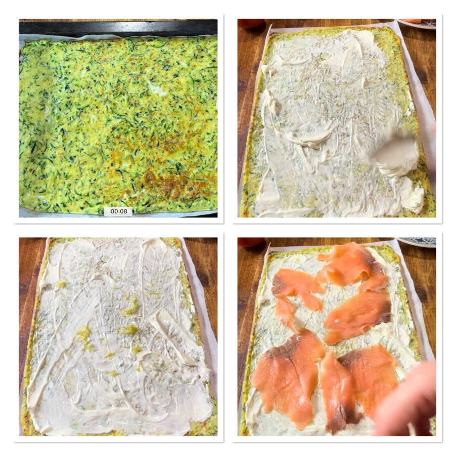 Passos para fazer o Rocambole de omelete de abobrinha com salmão e Philadelphia