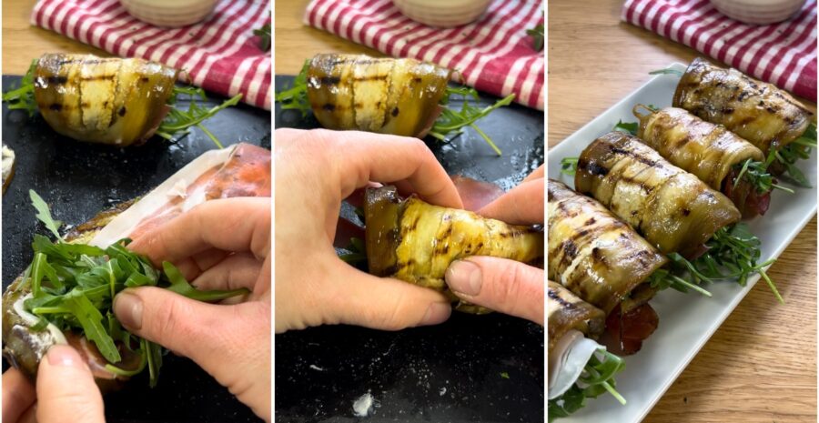Passos para fazer os Rolinhos frios de berinjelas grelhadas
