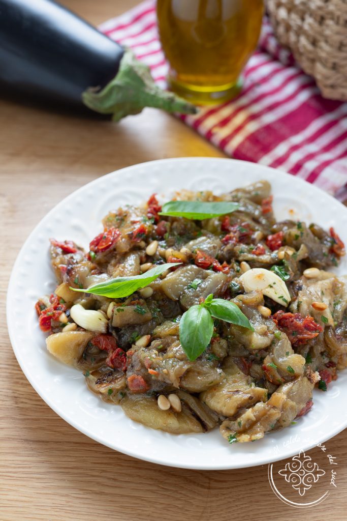 A salada de berinjelas grelhadas com tomates secos e pinhões é uma receita simples e saborosa, que vai permitir que você leve à mesa um prato vegetariano e vegano, leve e gostoso. As berinjelas grelhadas são deliciosas na sua simplicidade, mas são tão versáteis que dá pra preparar mil receitas gostosas, como os rolinhos de berinjela grelhada assados ou a folhado com berinjela grelhada, tomate e mussarela, sem falar dos rolinhos de berinjela à mediterrânea. Hoje, porém, a ideia é transformar nossas fatias de berinjela grelhada em uma salada original e cheia de sabor perfeita para quando as receitas com berinjela começam a entrar na estação. Uma salada fresca e rica, super prática pra saborear no almoço ou no jantar, ideal pra levar pra praia, pro campo ou pro trabalho, e pra preparar com antecedência, boa sozinha ou como acompanhamento, ótima pra quem está de dieta ou pra quem quer seguir uma alimentação vegetariana ou vegana ou simplesmente saudável e balanceada. Pronto pra descobrir comigo como fazer a salada de berinjelas grelhadas? Vamos pra cozinha, mas antes lembro que se quiser ficar por dentro de todas as minhas receitas, você pode seguir minha página no Facebook e meu perfil no Instagram.