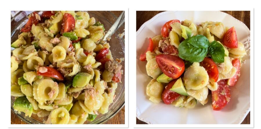 A última versão que preparei foi esta salada fria de orecchiette com abacate, atum e tomatinhos à qual adicionei também um pouco de cebolinha roxa de Tropea, um prato de verão único, fresco e delicioso que agradou todo mundo. Querem experimentar também? Me acompanhem na cozinha, vamos preparar juntos!