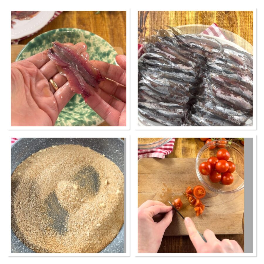 O sformato de anchovas à siciliana é um tortinho de anchovas assado com tomatinhos e farinha de rosca, praticamente um sformato de anchovas à mediterrânea cheio de aromas e sabor, perfeito para levar à mesa um prato principal de peixe econômico, mas gostoso. As anchovas fazem parte da grande família dos peixes azuis, são ideais para dar ideias para um cardápio à base de peixe e, no passado, eram menosprezadas por serem consideradas de pouco valor; hoje, no entanto, são redescobertas sobretudo pelo seu alto valor nutricional. As anchovas são ricas em ômega-3, vitaminas A, B, D, fósforo, iodo e vários minerais como o cálcio e são um alimento indispensável na variada e rica dieta mediterrânea. As anchovas são pescadas de março a outubro, período de reprodução em que estão mais gordurosas (gorduras ômega-3) e saborosas. Hoje, com anchovas frescas, vamos preparar um tortinho de anchovas à siciliana, um pouco diferente do Tortino di alici e patate alla siciliana, mas igualmente delicioso; usarei a receita da vovó Fernanda, que, para constar, era a minha querida avó. O tortinho de anchovas assado, gratinado com farinha de rosca ou miolo de pão (como dizia a vovó) é um prato econômico e saboroso, cheio de aromas, uma receita rápida para cozinhar anchovas que nos dá um prato principal de peixe econômico e apetitoso.