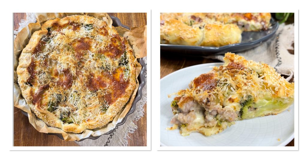 Torta salgada com linguiça e brócolis, uma das receitas das tortas salgadas gostosas feitas até agora. A massa folhada com brócolis e linguiça é um aperitivo rústico e um prato único com massa folhada, perfeito para um jantar informal entre amigos ou em família. Às vezes as receitas rápidas e saborosas com massa folhada são a solução certa para levar sabor e alegria à mesa. Com essa base, de fato, podem-se criar entradas de todos os tipos e as tortas salgadas com massa folhada são justamente as minhas preferidas, como a torta salgada de massa folhada com brócolis e linguiça, que junto com a Torta salgada de linguiça e batatas e a Torta salgada de espinafre e batatas, forma o meu trio preferido. Esta torta rústica fácil e muito saborosa, feita com poucos ingredientes, econômica e gostosa, perfeita também para as festas de Natal e fim de ano ou para piqueniques e passeios de primavera, é imperdível. Mas como se faz a torta salgada com brócolis e linguiça? Me acompanhe na cozinha, o preparo é super fácil; antes, porém, de correr para o fogão lembro que, se quiser ficar atualizado sobre todas as minhas receitas, pode seguir minha página no Facebook (aqui) e meu perfil no Instagram (aqui).