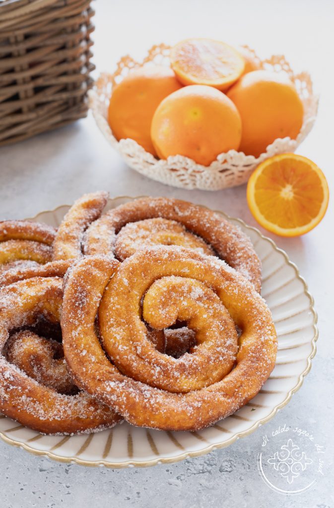 Zeppole da Sardenha ou Zippulas clássicas, as zeppole longas em espiral com açafrão na massa. As Zeppole sardas super macias são bolinhos de massa fermentada em forma de espiral que se fazem com funil, garrafa ou saco de confeitar: você já conhece? As frittelle a girella são deliciosos doces de Carnaval típicos da Sardenha, fáceis e rápidos de preparar, assim como a maioria dos doces fritos. Têm nomes diferentes conforme a região: Zippulas ou Tzipulas, Frisciolas, Frittura Araba, Cattas, Frisjoli longos, e são um doce levemente crocante por fora e muito macio por dentro, feito com uma massa mais líquida que se despeja direto na frigideira sobre o óleo quente formando uma espiral. Essas rosquinhas de massa frita, que você também encontra em bares e confeitarias na Sardenha, são feitas com poucos ingredientes simples e podem ser preparadas facilmente em casa — na verdade as Zeppole Sardas Fritas Caseiras são perfeitas para um lanche saboroso, um café da manhã especial e ficam ótimas acompanhando um bom café. Com certeza as frittelle de Carnaval sarde não são nada leves, mas eu garanto: vale a pena preparar ao menos uma vez por ano, porque as zeppole de Carnaval da Sardenha conquistam desde a primeira mordida! Antes de ir pra cozinha, lembrando que se quiser ficar atualizado sobre todas as minhas receitas, você pode seguir minha página no Facebook (aqui) e meu perfil no Instagram (aqui).