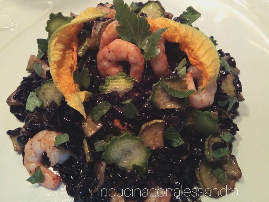 Arroz Venere com camarões e abobrinhas, um arroz muito, muito saboroso. Um prato para saborear durante todo o ano, bem fácil e rápido, ótimo para jantares com familiares ou amigos — você vai causar uma ótima impressão com seus convidados. Ideal para um menu de peixe na Páscoa e no Natal.