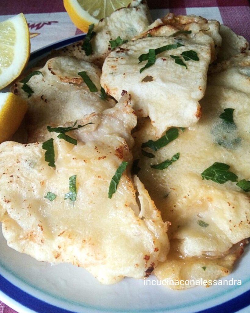 Em uma tigela, misture a farinha, o ovo e uma pitada de sal. Adicione depois a água, mexendo bem, cuidando para não formar grumos. Pique a salsinha e adicione à massa, mexendo novamente. Deixe descansar por 10 minutos. Coloque então os bifes na massa e deixe descansar por cerca de 15 minutos. Aqueça o óleo em uma frigideira e comece a fritar. Escorra os bifes em papel absorvente. Empratar com uma pitada de salsinha picada e acompanhar, se desejar, com rodelas de limão.