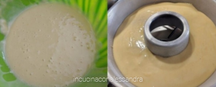 Pegue a forma, unte com manteiga e farinha, despeje dentro a massa preparada, tentando nivelar um pouco, e asse no forno pré-aquecido a 180°C por cerca de 40/45 minutos. Como sempre digo, faça o teste do palito, pois a cozedura pode variar de forno para forno.