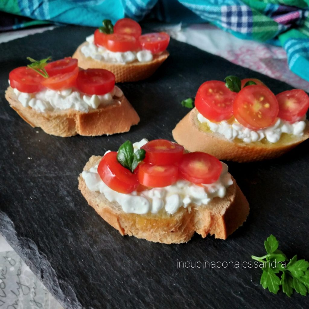 Passos Bruschettas com queijo cottage e tomatinhos