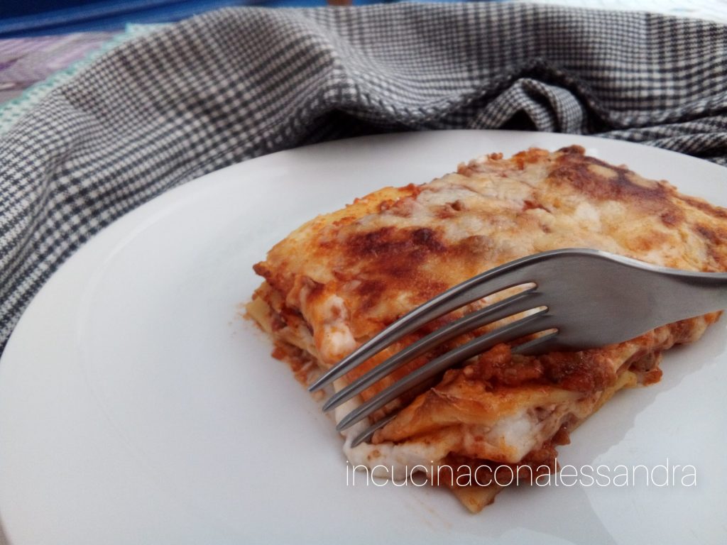 Primeiramente, é preciso preparar o bechamel e o molho. A lasanha é simples de preparar quando o molho está pronto. Pegue uma assadeira retangular, faça uma primeira camada de molho, depois comece com a massa, alternando camadas de massa com molho e depois massa e bechamel, continue até 2 centímetros da borda, não mais alto porque senão durante o cozimento transborda. Na última camada, dê uma boa polvilhada de queijo parmesão. Coloque no forno pré-aquecido e asse a 180° por cerca de 25/30 minutos.
