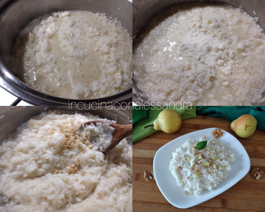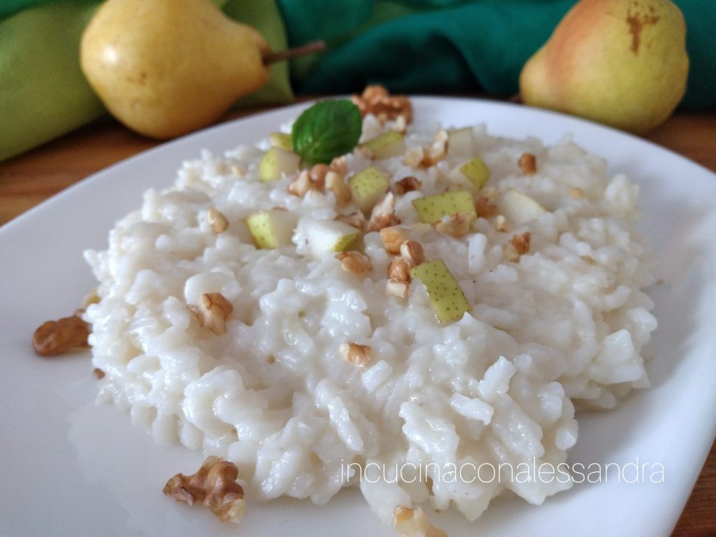 Chega o outono com todos os seus maravilhosos alimentos que nos oferece. Hoje vamos preparar um risotinho com peras. O Risoto de pera pecorino romano e nozes é um primeiro prato de sabor outonal, simples de preparar e rápido, apenas o tempo de cozimento do arroz. Pera e pecorino são uma ótima combinação, de fato a doçura da pera combina perfeitamente com o sabor marcante do pecorino romano, eu garanto que é uma iguaria.