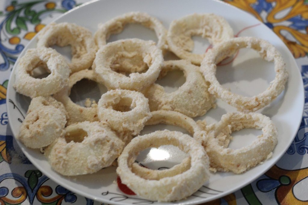 Passos para fazer os anéis de cebola empanados com pão ralado na airfryer